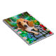 A beautiful Basset hound awaits you in a colourful secret garden.