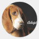 Basset hound sticker with text "adopt"