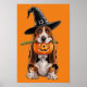 basset hound with pumpkin in mouth poster