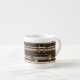 Have some espresso with a collection of bassoon keys: shown in a detailed close-up of a section of a lovely old bassoon wrapped around the cup, the burnished metal of the key mechanisms contrasts vividly with the rich, dark wood of the instrument itself.