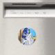 A lovely and colourful kitty masquerades as the Egyptian goddess Bast on this whimsical magnet.