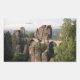 Rectangular photo sticker of the stone Bastei Bridge (Bastei Brücke) over the Elbe river connecting the iconic rock formations of the Elbe Sandstone Mountains near Dresden in the national park Saxon Switzerland (Sächsische Schweiz) in east Germany.