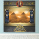 Egyptian Pyramids, Hieroglyphs and Bastet Goddess Statutes.