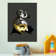 A fun fusion of ancient Egyptian mythology and artistic expression. Well known Cat Goddess Bastet is depicted as a bellydancer playing her ancient instrument sistrum. As the music notes gradually diminish in size, they transform into the scales of the nefarious serpent, Apep (also known as Apophis).