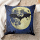 A dark bat spreads its wings, flying against a full moon, surrounded by bare trees creating a haunting nocturnal ambiance. Ideal for Halloween, eerie themes, or nature aesthetics.