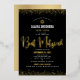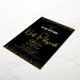 Be proud, rejoice and showcase this milestone of your favourite Bat Mitzvah! Send out this stunning, modern, sophisticated, personalized Hebrew name invitation for an event to remember. Graphic real gold foil calligraphy script, Star of David, and confetti dots, overlay a rich, dramatic, black background. A faux gold Star of David overlays a faux metallic gold ombre background on the back. Personalize the custom text with your Bat Mitzvah’s name, Hebrew name, date, and venue information. Guaranteed to add stylish fun to her special occasion!