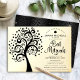 Be proud, rejoice and showcase this milestone of your favourite Bat Mitzvah! This graphic, black tree of life with sparkly Star of David and dot “leaves” with black calligraphy script on a sophisticated, real gold foil background, is the perfect invitation for this special occasion. A faux gold Star of David overlays a black ombre deco pattern background on the back. Personalize the custom text with your Bat Mitzvah’s name, date, and venue information. Send this out for an event to remember!