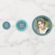 Add your photo and personalized text to this stylish glam party table confetti in blue opal watercolor [faux] and decorate your tables for a one of a kind Bat Mitzvah celebration. One side each of the large and medium size confetti has custom text in white on a rich deep blue colour. In addition, one side of the smallest size has a monogram initial option in white on a the same dark blue colour and then add your photo, surrounded by a matching deep blue border, to the large size. Order extra sets of this custom faux watercolor blue opal photo confetti and sprinkle a few pieces inside each invitation envelope for a little pop of fun when they get your Bat Mitzvah invite. Or glue matching sizes together with a sting in between to hang over the cake table for an inventive and totally custom display. This blue opal custom table confetti can be personalized for any event including weddings and anniversaries.