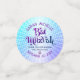 Add some extra style to your favourite Bat Mitzvah’s celebration party with this customizable table confetti! Fun, trendy, bold purple and navy blue typography with modern sans serif typography overlay a background of pop light turquoise and purple ombre gradient rays with white dots on one side. A white Star of David overlays a darker blue and purple pop background on the other. Personalize the custom text with your Bat Mitzvah’s name, date, and personalized message. Matching and coordinating invites, envelopes, address labels, stickers, banners and other Bat Mitzvah goodies are also available in this trendy and special collection.