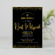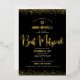 Be proud, rejoice and showcase this milestone of your favourite Bat Mitzvah! Send out this stunning, modern, sophisticated, personalized invitation for an event to remember. Graphic real gold foil calligraphy script, bold type, Star of David, and confetti overlay a rich, dramatic, black background. A faux gold Star of David overlays a faux metallic gold ombre background on the back. Personalize the custom text with your Bat Mitzvah’s name, date, and venue information. Guaranteed to add stylish fun to her special occasion!