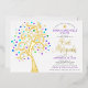 Be proud, rejoice and showcase this milestone of your favourite Bat Mitzvah! This graphic real gold foil tree with sparkly turquoise, teal, purple and blue Star of David and dot “leaves” on a white background is the perfect invitation for this special occasion. A tiny, dark purple Star of David pattern overlaying lighter purple is on the back. Personalize the custom text with your Bat Mitzvah’s name, Hebrew name, date, and venue information. Choice of gold, rose gold, or silver real foil. Guaranteed to add stylish fun to her special occasion!