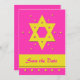 Stunning bat mitzvah save the date invitation card featuring a yellow Star of David on a pink background. Copyright henishouseofpaper