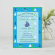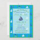 Voilier à thème marin vert et bleu, baleines, ancres océaniques invitation à la douche bébé pour le baby shower d'un garçon.