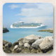 Bateau de croisière au banc de sable de Cocos - ancré sans risque en mer, à partir des roches et des récifs, un bateau de croisière de classe de liberté se repose outre de l'île tropicale privée de ligne de croisière du banc de sable de Cocos, en Bahamas.