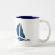 Bateaux à voile tasse à café montrée en marine/blanc. Customisez cet objet ou achetez tel quel.