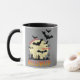 Une tasse à café qui dit "Break from the Grind" avec une image d'Halloween de chauves-souris volant d'une ville devant une lune brillante est un design ludique et éffrayant, souvent porté par ceux qui cherchent une pause de leur routine quotidienne. Il suggère un désir d'échapper au stress de la vie quotidienne et d'adopter un mode de vie plus aventureux ou plus excitant.