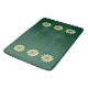 Crochet pattern of daisy in yellows, grey and hunter green. Pattern is repeated vertically 3 times each side.