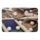 Bath Mat/Baseball Equipment- Balls, Bats, Gloves and Hat Give your feet a sweet treat right after your bath. Featuring a luxury soft memory foam, this bath mat cushions your feet and helps you feel great while you dry off and get ready to face the day. Made out of high density memory foam, this soft rug cushions your feet and feels great while you dry off and get ready for the day. Dimensions: 16” x 24” Material: 85% polyester/15% polyamide. Quick-drying foam core. SBR non-skid backing. Machine washable. Warning: For use outside of the tub. Always place bath rugs on a dry surface before use.