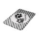 Paw Prints. Background is one seven toed paw print replicated many times at an angle. Centre has white circle with left and right polydactyl paws and the word "polydactyl" at an angle.