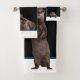 Bath time With Otters Bath Towel Set = Bath time With Otters Bathroom towels. Cute otters on black and white theme that you can customize background, colours, images and more. Pictures of otters doing otter things. Cute antics from these creatures of water. You can customize the colours of your towels to match your bathroom theme decor. Great gift for kids and those that love otters.