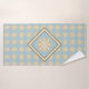 This intricate Bath Towel matches an amazing Shower curtain. It has lacey cream medallions in shades of cream on a sky-blue background. The design is reminiscent of a Persian rug. The back side Has repeating medallions laid diagonally. The Medallions images come from an actual handmade tile by Oregon tile maker Fay Jones Day.