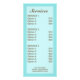 Destei's cute cartoon illustration of a brunette woman wearing a towel on her head and body and having a white face mask on her face together with cucumbers on her eyes and a pink flower by her ear. The background colour is soft light blue with a cute polka dots pattern. On the other side of the card there are customizable text areas for service options.