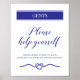 This fabulous navy blue printable wedding sign is a great idea to place in the mens bathrooms next to the basket of essentials they may need. It will also encourage your guests to get back on the dance floor!