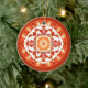 Batik Mandala Pattern in Rust Red Ceramic Ornament