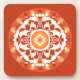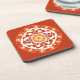 Coaster in a batik textured mandala / medallion pattern in shades of terracotta, cream and deep rust red