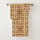Ensemble de serviette dans une copie tribal-inspirée moderne de tissu de batik - les nuances du chameau se bronzent, brun chocolat et beige, accentués avec de la crème