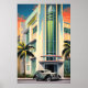 Peinture aérographe stylisée de l'entrée d'un bâtiment art déco dans les années 1930 avec un roadster garé devant. Réalisé à l'aide d'algorithmes génératifs et Photoshop.
