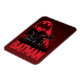 This graphic features a dramatic portrayal of Batman, cast against a stark, red backdrop that echoes Gotham's perilous atmosphere. The piece centres on Batman’s silhouette, emerging from the darkness with an imposing stance, underscoring his role as the guardian of the night. The bat signal looms large in the sky, calling upon the Dark Knight to save Gotham, the city he vows to protect. Rain streaks down the artwork, adding a layer of gritty realism and enhancing the sense of a never-ending battle against crime. Red bats flutter from the emblem, suggesting the ever-present threat that pervades Gotham. This artwork captures the essence of Batman’s enduring vigil, marked by sacrifice and relentless courage.