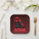 This graphic features a dramatic portrayal of Batman, cast against a stark, red backdrop that echoes Gotham's perilous atmosphere. The piece centres on Batman’s silhouette, emerging from the darkness with an imposing stance, underscoring his role as the guardian of the night. The bat signal looms large in the sky, calling upon the Dark Knight to save Gotham, the city he vows to protect. Rain streaks down the artwork, adding a layer of gritty realism and enhancing the sense of a never-ending battle against crime. Red bats flutter from the emblem, suggesting the ever-present threat that pervades Gotham. This artwork captures the essence of Batman’s enduring vigil, marked by sacrifice and relentless courage.