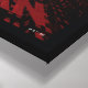 This powerful graphic illustrates Batman in a dynamic action pose, leaping against a backdrop of a blood-red moon and a stormy Gotham skyline. The illustration is steeped in shades of red and black, emphasizing the intensity and danger of the moment. Batman is depicted in full motion, grappling hook in hand, ready to confront the perils that lurk in the night. The city below him is rendered in a detailed wireframe style, suggesting its complexity and the depth of secrets it holds. Rain slashes across the scene, adding to the dramatic tension and the feeling of a high-stakes battle against crime. The artwork conveys Batman's relentless drive and his role as a dark hero in a city that never sleeps, capturing his essence as Gotham’s silent guardian and protector.