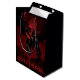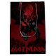 This powerful graphic illustrates Batman in a dynamic action pose, leaping against a backdrop of a blood-red moon and a stormy Gotham skyline. The illustration is steeped in shades of red and black, emphasizing the intensity and danger of the moment. Batman is depicted in full motion, grappling hook in hand, ready to confront the perils that lurk in the night. The city below him is rendered in a detailed wireframe style, suggesting its complexity and the depth of secrets it holds. Rain slashes across the scene, adding to the dramatic tension and the feeling of a high-stakes battle against crime. The artwork conveys Batman's relentless drive and his role as a dark hero in a city that never sleeps, capturing his essence as Gotham’s silent guardian and protector.