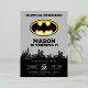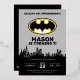 Kick off your celebration in heroic style with these premium Batman Gotham City foil birthday invitations! Featuring the iconic Gotham skyline illuminated by the Bat-Signal and shimmering foil accents, this design captures the excitement of the Dark Knight’s world. Bold typography and dynamic details make this invitation perfect for fans of all ages. Fully customizable, it’s an unforgettable way to set the tone for your superhero-themed party.