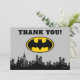 Montrez votre gratitude à la manière des super-héros avec cette carte de remerciement dynamique de Batman sur la ville de Gotham ! Avec la skyline emblématique de la ville de Gotham et le signal de chauve-souris qui brille dans le ciel nocturne, cette carte ajoute une touche audacieuse et excitante à votre message. Avec des designs dynamiques et des couleurs vives, c'est le moyen idéal pour remercier vos invités après une célébration inoubliable sur le thème de Batman. Entièrement personnalisable pour rendre votre appréciation encore plus personnelle.