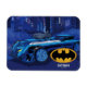This graphic vividly captures Batman speeding through the neon-lit streets of Gotham City in his iconic Batmobile. Above him, the Bat-Signal shines brightly against a deep blue sky, calling him to duty. The artwork uses a striking colour palette of blues and vibrant yellow highlights, emphasizing the high-speed energy and the futuristic aesthetic of the Batmobile. The urban landscape of Gotham is rendered with bold, exaggerated forms, giving the scene a dynamic and slightly surreal feel. This illustration not only celebrates Batman's role as the guardian of Gotham but also his reliance on technology and cunning to maintain order in a city that never sleeps. The image is a thrilling representation of Batman in action, perfectly blending elements of danger, heroism, and adventure.