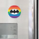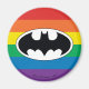 DC Pride | Batman's iconic logo with layers of rainbow colors inside it.