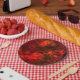 Bats and moon red black pattern paper plate