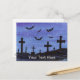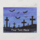 A watercolor landscape of bats in flight over a cemetery at night adorns this customizable Postcard!