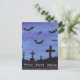 A watercolor landscape of bats in flight over a cemetery at night adorn this customizable postcard!