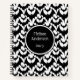 Spiral notebook with personalized name and text print. This notebook comes in a black and white bats horror gothic pattern design. Type your name and text in the template fields to personalize it.