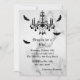 A black crystal chandelier and eerie bats on a classic marble background decorate modern Halloween Party Invitation. The back is further embellished with a fancy spider damask pattern.
