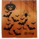 Halloween design with black evil pumpkin, bats, and spider over an orange background