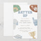 Batter up Preppy Blue Baseball Bow 4th Birthday Invitation