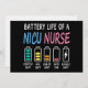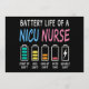 Humorous shift chart showing the battery life of a NICU nurse, also known as a neonatal intensive care unit nurse, with colorful levels from start to double shift. Ideal for neonatal nurses who enjoy relatable workplace humor.