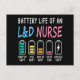 Humorous shift chart showing the battery life of an L&D nurse, also known as a labor and delivery nurse, with colorful levels from start to double shift. Ideal for maternity and birthing staff who enjoy relatable workplace humor.