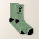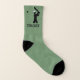This cricketer is has bat high in the air and wears a distinctive white cap. The silhouette is repeated on the outside ankle of both feet, showing the player sending the cricket ball flying. Seen here on an attractive shade of green but you can customize for a different background colour as needed. You also have the option to change the text to initials or a short name. Note: The image and text will show on the outer side of each sock, the inner side will be a plain colour.