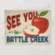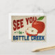 A charming Battle Creek Michigan vintage travel postcard featuring a lovely red apple, along with fun retro style text that says, "See you in Battle Creek"